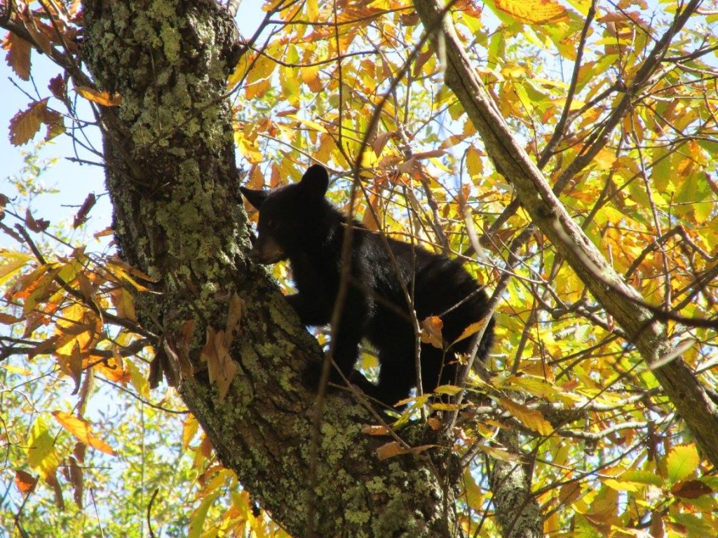 2017 — Elkmont — Hot! bear cub up on Spruce Flats Fall trail