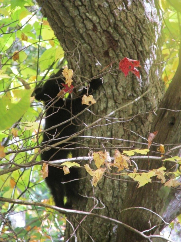 Maggie, up until this point in time, had also never seen a bear wild in the woods. She always wanted to, but I told her it would happen when it happens. We hiked for a bit with Maggie leading the way. Suddenly coming around a bend in the trail there was a huge sound crashing down through the undergrowth. She turned to me and said, ‘That was a bear, wasn’t it?’ I told her, ‘Yes, deer don’t make that much noise.’ She was disappointed, but we hiked on. A little bit later Maggie suddenly stopped—urgently pleading with me to get the camera. There on the other side of the ridge up in a big tree she had spotted a bear cub! I fumbled to get the camera out for her. Then she saw another cub. Then another! 3 cubs! Then we saw mama bear climb up and sit in the crotch below them watching us and huffing to make sure we knew she was there. We snapped pics and took video for maybe 10 minutes! Not just a bear sighting, but a real-live encounter. I cannot imagine any first encounter that would have been better.