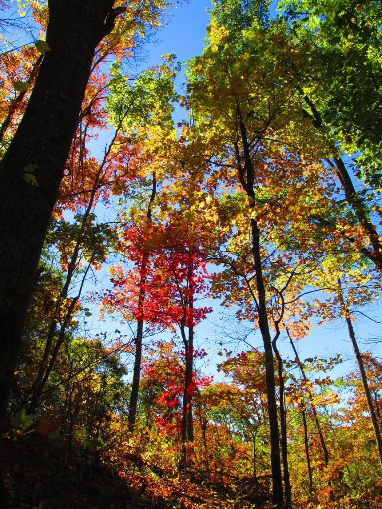 The next morning we were going to hike up on Cataloochee Divide Trail. We stopped at an overlook where we were greeted by someone who immediately starting complaining: ‘the colors aren’t very good this year!’, ‘they’re going to ruin this park like they did the ones out west!,’ ‘it’s getting too crowded here,’ and more griping in similar critical comments. I told Maggie that the colors were fine. We had sunshine and a great day to hike. We didn’t need to let that negativity color our day.