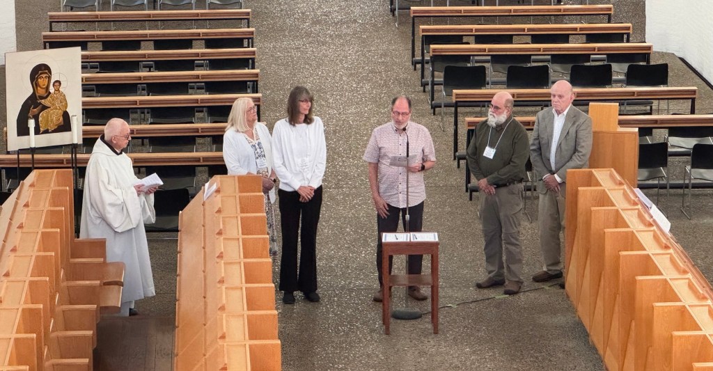 My status has changed. I am now a Committed Lay Cistercian of Gethsemani. Of course, there has been reason to think I should have been committed before now (pun, groan, please keep reading.). I am perhaps eccentric in some ways, but I feel centered and on the mark with this move. During Vespers on Saturday, 11 October, 2025, I stood before God, the monks of Gethsemani, and my Lay Cistercian colleagues and made my commitment as a Lay Cistercian. I affirmed my commitment to walk in a particular spiritual path in the same direction as others before me.