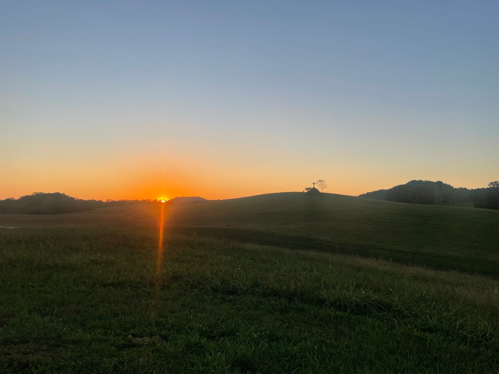 And the place was also one of openness and a sense of freedom. Walking through the woods on a fall day hearing the crunch of dried oak and beech and hickory leaves. Catching your breath at the top of the one of the knobs that afforded a view of the monastery. Feeling the breeze on St Joseph’s hill on a fall afternoon. Even seeing a lunar eclipse in the cold night after Vigils in the dark in the church. Finding frost flowers on a cold November day. Fields that stretch out in different directions. Ponds and lakes that reflect the sky above them. What a slice of creation! The place is beautiful in so many ways.