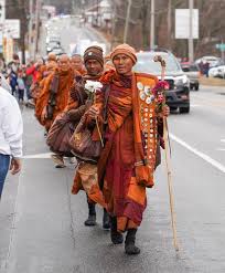 Along the way something started to happen. People began to get word about the monks and their Walk for Peace. People started showing up just to see them walk. People gave them flowers. People bowed in respect. People began to follow along online.
