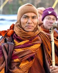 Along the way something started to happen. People began to get word about the monks and their Walk for Peace. People started showing up just to see them walk. People gave them flowers. People bowed in respect. People began to follow along online.