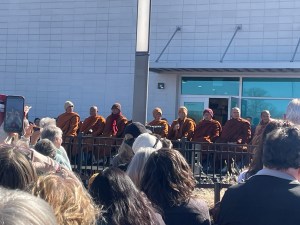 I got to hear Venerable Bhikkiu Pannakara speak about their journey. He hadn’t envisioned that we was going to talking along the way. But now he was talking several times a day to sometimes thousands of people. He was talking about mindfulness and being at peace within ourselves. He was thanking people who had made the journey possible and blessed them along the way. He was teaching about how the monks approach their own practice of mindfulness and peaceful compassion. He told us that since Buddhists believe in reincarnation that it’s possible Aloka was a monk in a former life. The crowd listened and learned and, I’m sure like me, loved the chance to be part of this movement in this small way.