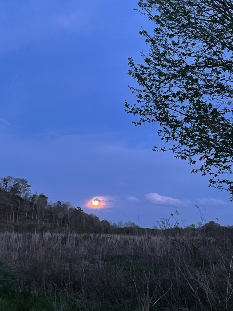 I began my Hike-a-Thon this year with a Pink Moon Hike at Seven Islands State Birding Park. Ranger Stephanie led this hike. We started by going down the Island Loop trail and finding some wildflowers that she would be pointing out on another hike later that week. We stopped and listened to the variety of frog songs (yes, they do make a sort of music.). We paused on the bridge to watch the moon rise.